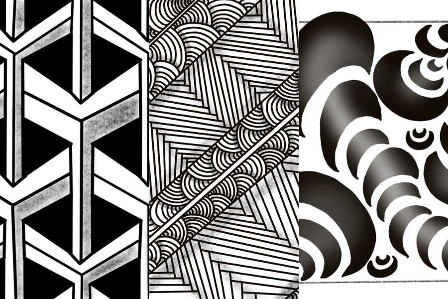 Much like Mandala Drawing, Zentangle art is all about repetition. However instead of intricate patterns, tangles are simple patterns that allow you to focus on the process. This art exercise is known to reduce stress and promote concentration.