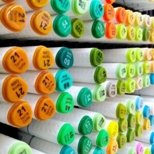 Dye-based markers filled with alcohol solvent for smooth, fast-drying color and blends.